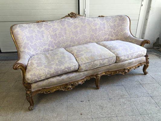 Poltrona in legno dorato italiana del XIX secolo.