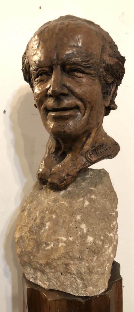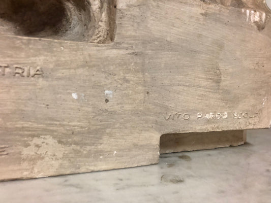 Testa di uomo in terracotta, firmata Prestipia datata 1975.