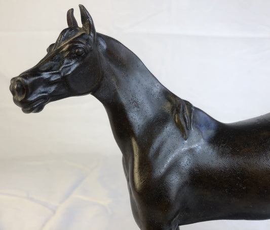 Statuina del cavallo "Arc en ciel" in ferro patinato